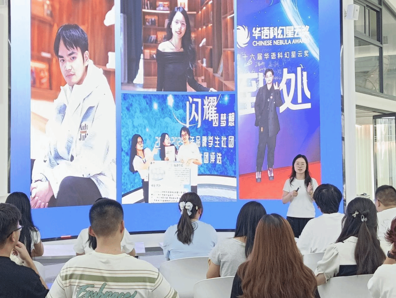 随后,隋慕驰老师与尤老师也接过了话筒,从不同角度为新生们送上“通关秘籍”。隋老师鼓励大家把科幻当作一个酷炫的“跳板”,在这里大胆尝试,把天马行空的幻想变为可以触摸的实践。尤老师则带着大家展望前沿,希望同学们能善用AI等新工具为自己的想象力“加持”,让科技为科幻梦想插上翅膀,找到属于自己发光发热的舞台。