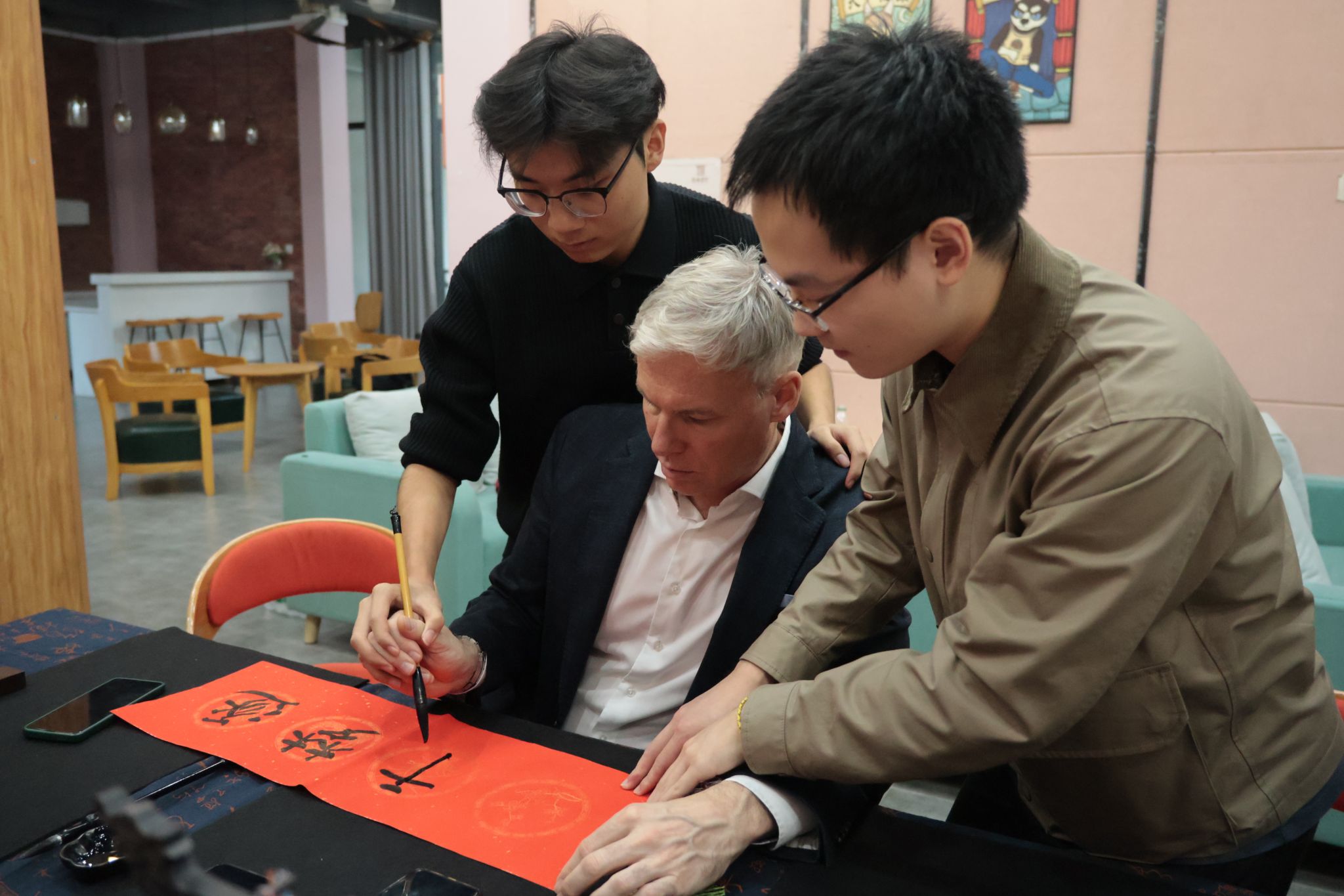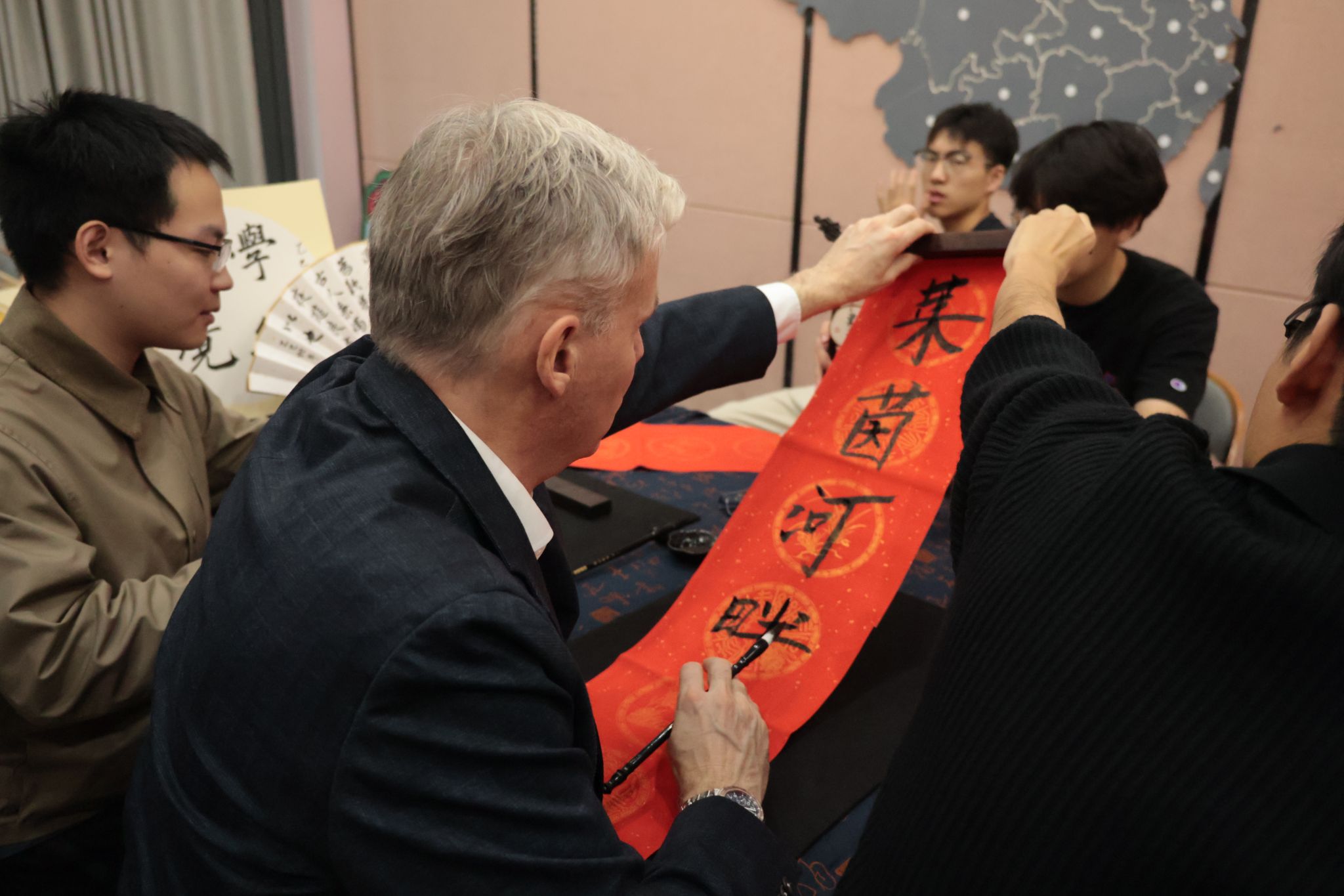 此次中外文化交流活动,不仅让Nils教授深度体验了中华传统书法艺术的独特魅力,更以“逐梦乘风”的美好信念为纽带,搭建起一座跨越国界的友谊之桥。书法是中华优秀传统文化的重要载体,蕴含着中国人的审美追求与精神内核。未来,将持续策划并开展更多形式多样的书法文化交流活动,以笔墨为媒介,让更多国际友人走进书法、了解书法、爱上书法,让中华传统书法艺术跨越山海,在不同文明的交流与碰撞中,绽放出更加鲜活的生命力。