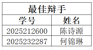 珠玉随风散,清辉满辩台。经过数轮紧张激烈、精彩纷呈的思辨,评委们经多维度进行综合裁定。最终,青年说队和我们说的都队凭借出色的整体表现成功晋级决赛。同时,赛事还评选出了2名表现卓越的“最佳辩手”,他们以缜密的思维、敏捷的反应和出众的口才赢得了评委与观众的一致认可。