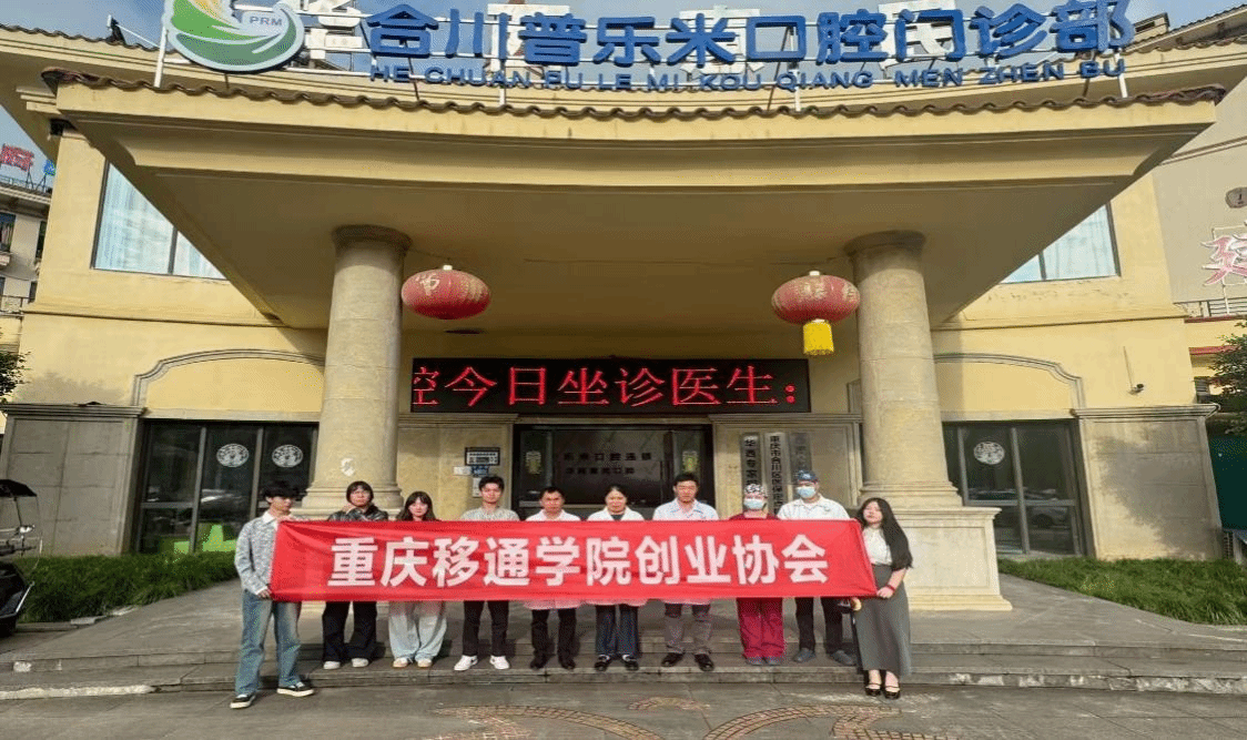 傍晚时分,交流活动接近尾声,全体人员在普乐米口腔连锁(合川店)门口合影留念。镜头定格的瞬间,不仅记录下此次校企对话的圆满落幕,更承载着重庆移通学院创业协会成员们的成长收获。此次活动,让青年学子走出校园、走进企业,在与行业专家的对话中明晰了成长方向,在与企业的交流中探索了合作可能,为后续创业实践与校企协同发展注入了新动能。
