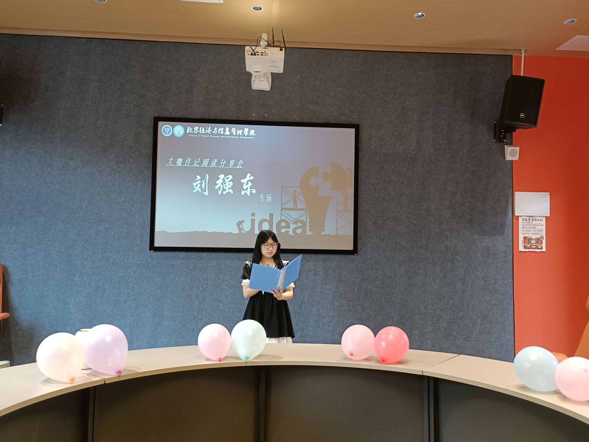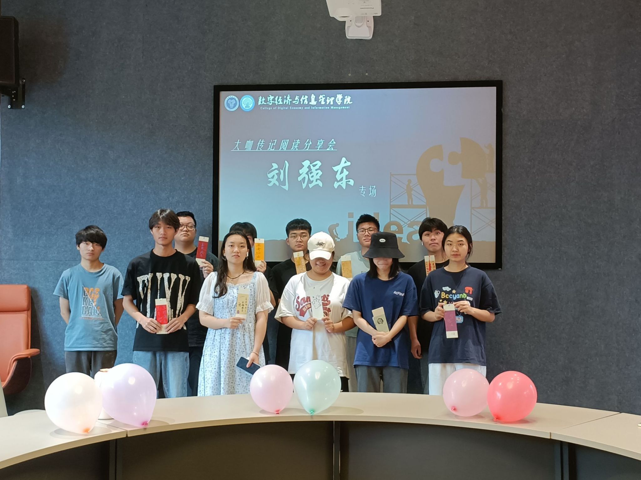 为紧扣“信息产业经营管理人才”育人目标,进一步落实信息产业大咖传记阅读计划,提升校园大咖文化氛围,增加同学们对信息产业的兴趣给同学们提供一个展现自我、提升自我的机会和舞台。2024年6月7日,数字经济与信息管理学院在古剑书院龙泉会议室成功举办了“信息产业大咖传记阅读分享会人物系列——刘强东专场”活动。此次活动旨在深入学习学校信息产业阅读计划,通过大咖传记的阅读分享,培养学生们的阅读理解能力,陶冶学生们的高尚情操和趣味。