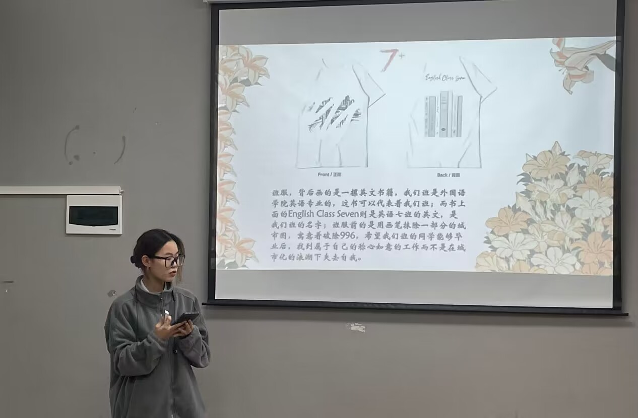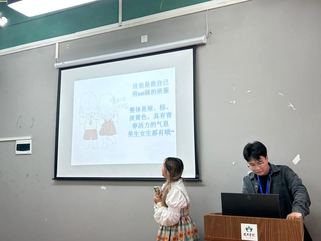 此次班徽班服答辩比赛的现场氛围紧张又激烈,经过初赛的淘汰,最终十二支队伍脱颖而出拿到决赛的入场券。选手们对自己团队的作品都有着独到的想法与见解,他们激情昂扬地描述着设计理念,讲述他们心中的班级体。选手们的创新想法和自信风范无疑不充分展示出淬炼学子们勇于创新实践的勇气与不断自我提升的奋斗精神。