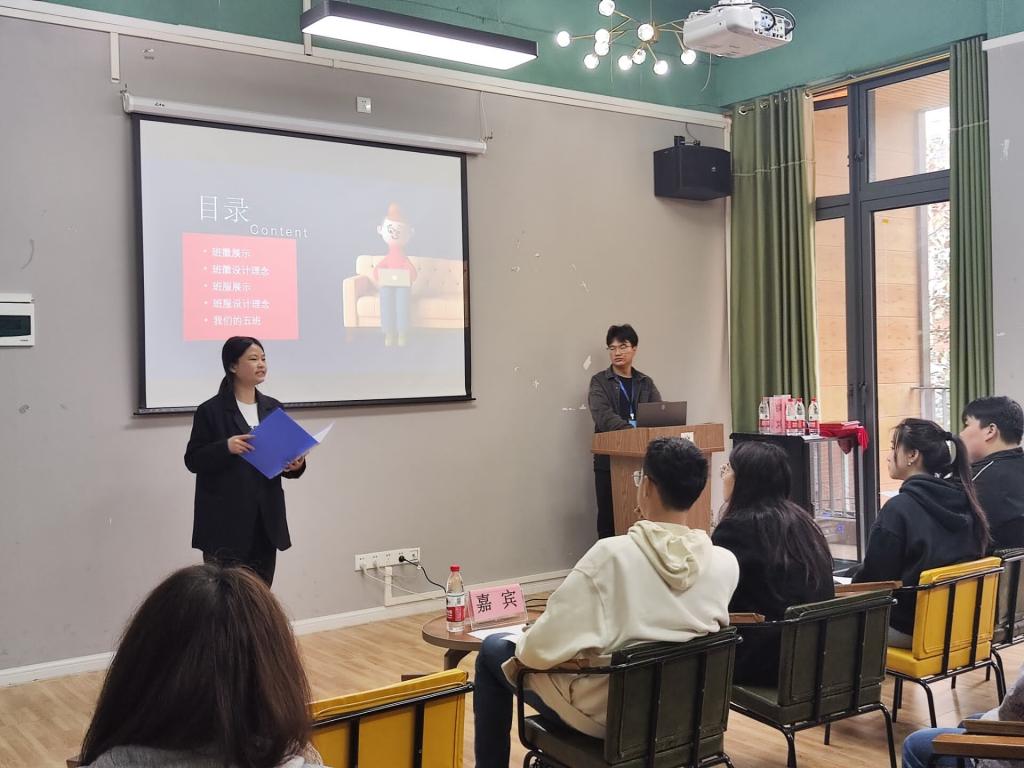 为建设班级的集体主义精神和团队意识,提升学子们的创新精神及表达实践能力,淬炼·国际商学院科技协会于2023年3月17日在花果书院多功能活动室开展以“‘徽’聚梦想·创想未来”为主题的班徽班服设计比赛答辩。本次比赛特别邀请到志愿服务板块指导老师张鑫、竞技体育板块指导老师陈露桦以及艺术传媒学院的学生主席们担任评委嘉宾。