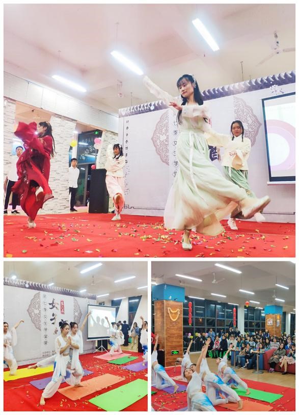歌声像潺潺流水,又似一泓细流,洗涤了心灵,照亮了心扉,女生们不由沉浸在淬炼商学院Venus艺术团的献唱节目中;自信、靓丽、青春是模特协会小姐姐的诉说的故事;瑜伽协会的瑜伽展示,优雅的体态更加激励了女生们;声声入耳,弦弦扣心,古琴的魅力就在于它的韵味十足而又击中人心;花样年华,别样风貌,正如华韵汉服协会的表演,体现了女生的多样风华。