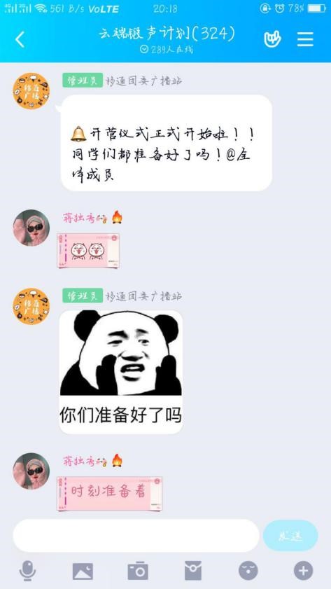 开班仪式于2020年4月6日晚八点在线上开启,期间站站将班规、学习方式、活动意义等与同学们进行分享,同学们响应热烈,在群内积极参与讨论,在课上同学们积极学习,课后分享自己的练习音频。