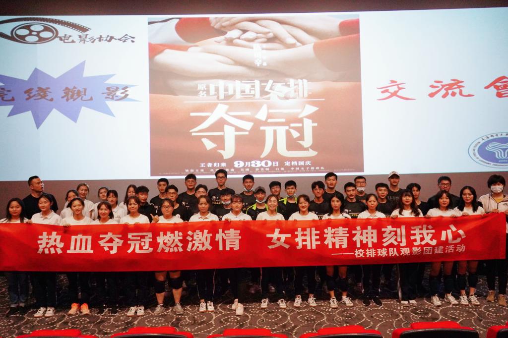 9月25日晚18点,我校电影协会联合校排球队、爱莲书院,在万画影城举办《夺冠》院线观影活动。全体电影协会成员、校排球队师生、爱莲书院师生以及电影教育中心教师和部分2020级新生到场观影。映后全体师生就电影《夺冠》展开交流会,积极分享自己的观影心得,进一步学习了解中国女排精神。