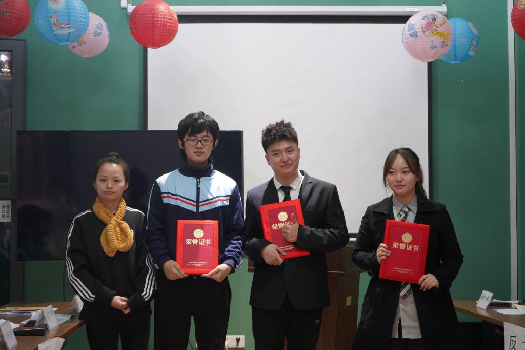 比赛次之情为重,最终“博弈队”荣摘桂冠,“亲这边建议您退队”获亚军,“秋马队”获季军。“秋马队”一辩荣获本次新生杯“最佳辩手”称号,孟易老师为选手颁发荣誉证书。