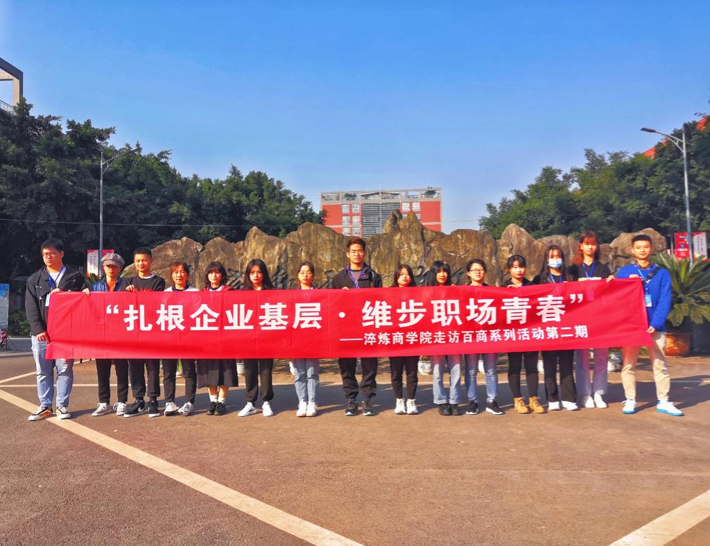 为加强商院兼职信息平台的建设,更进一步了解学生兼职,踏着冬日暖阳,淬炼商学院就业助理团实践部迎来了“扎根企业基层·维步职场青春”——淬炼商学院走访百商系列活动第二期。本次活动于2020年11月14日上午10:00正式开始,就业助理团实践部走访小组的成员们准时在校门集合出发,开始新的征程。
