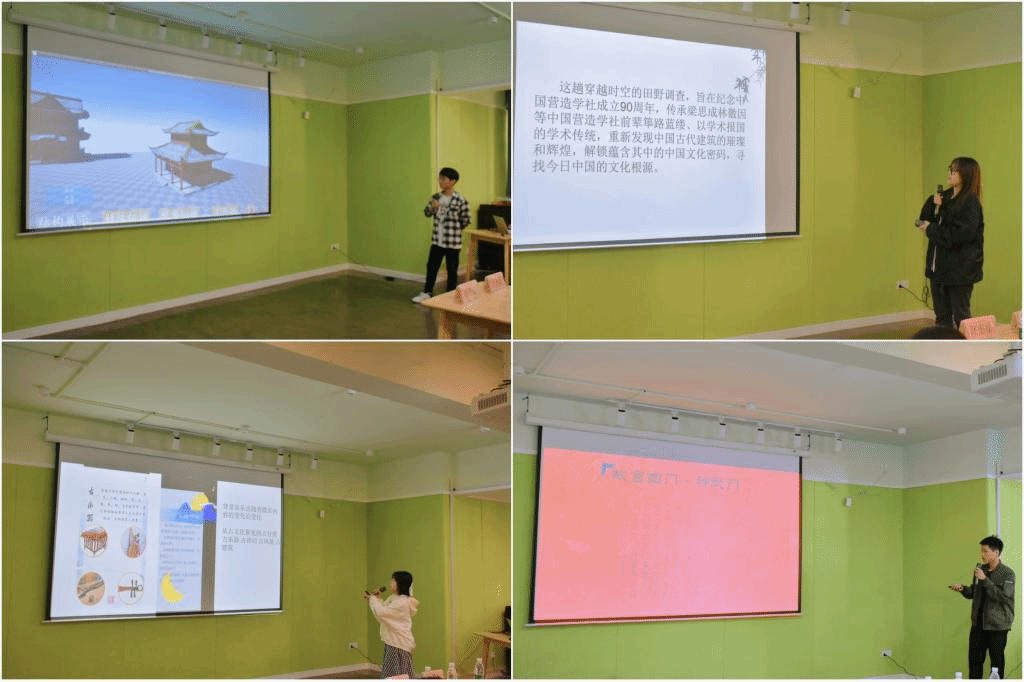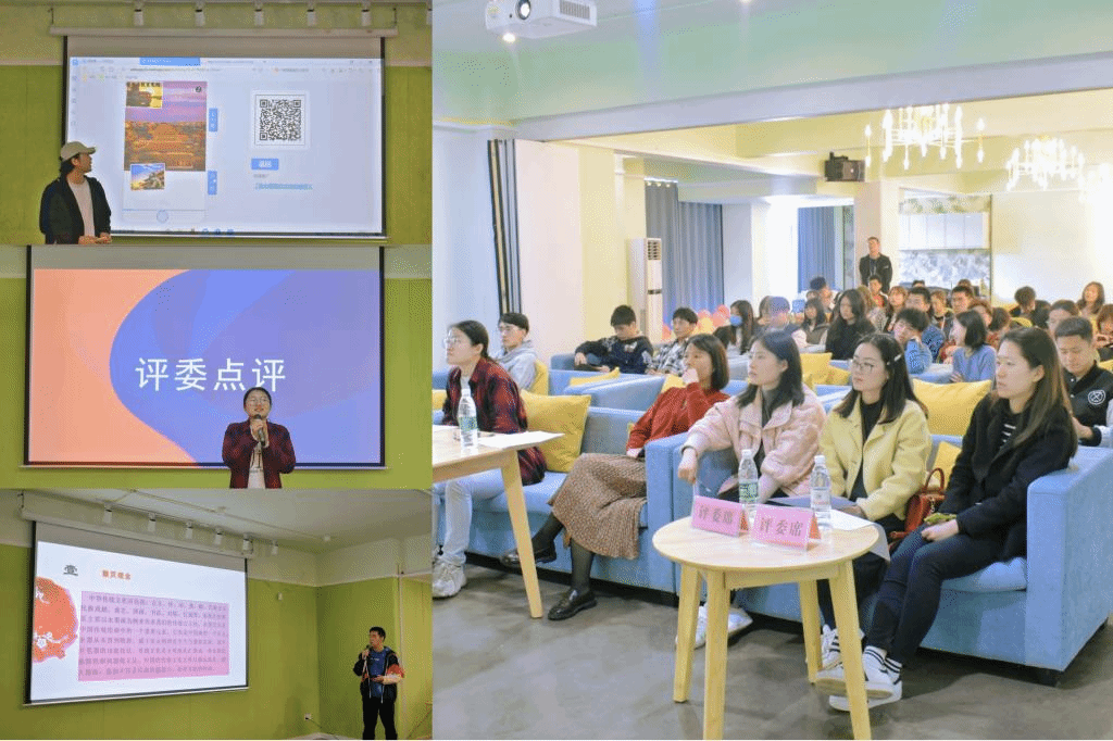 能力是日月累积的成果,自信总是各种比赛的加分项。落落大方的小组代表昂首挺胸,手握话筒,在台上自信认真地为大家讲解小组微页设计的创作理念。跟随同学的步伐,我们来到了江南水乡,“水光潋滟晴方好,山色空蒙雨亦奇”。了解了极富韵味的江南水乡建筑,洞察了细节美,飞檐,飞鸟展翅,轻盈活泼;古人的智慧和审美总让人惊奇,马头墙竟然可以在相邻居民发生火灾时隔断火源。各组呈现作品的方式都别具特色,有同学亲自手绘古建筑,带大家进一步看清建筑结构,通过自己的动手能力,借助软件制作建筑模型,令现场评审和观众大开眼界,参赛选手不仅带大家领略了古建筑之美,也提出了对古建筑保护的倡议。在高速发展的时代,现代高楼大厦遍布世界,而古代传统建筑却悄无声息地被毁坏或消失,作为一种优秀的建筑文化,古建筑保护刻不容缓。借着3.12植树节实时话题,参赛选手以植树节的来源为背景,介绍了国家和人民为护林工作做出的突出贡献,从陈人忠和焦裕禄的故事中,我们体会到了护林的艰辛以及重要性,用“绿水青山就是金山银山”的理念来诠释再合适不过了。讲解的同时,各评委老师饶有兴趣地向讲解人员提问,从微页中的素材来源到作品的整体构想,从个人的理解到团队的分工,都让现场观众更深入的了解到各组作品的内核和创作灵感。