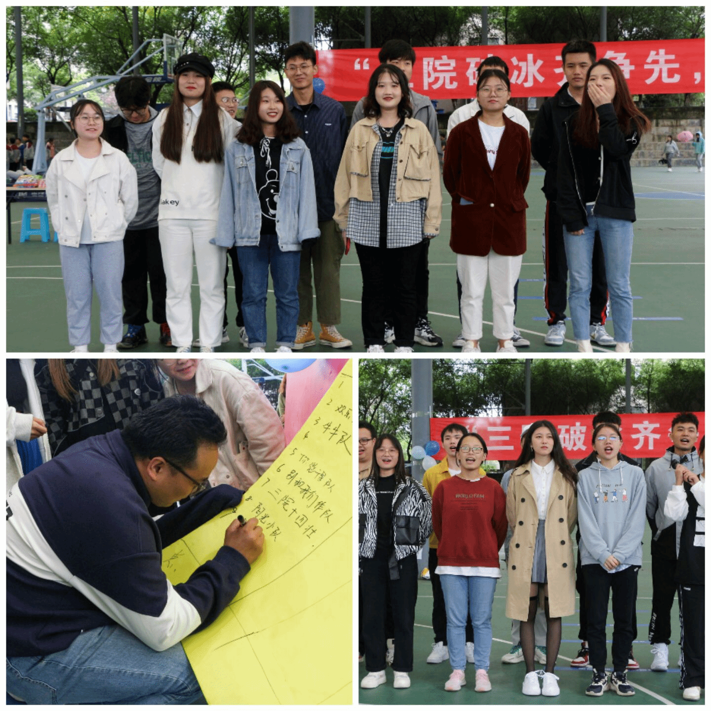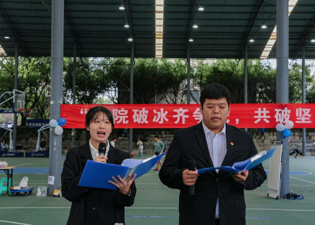 新学年伊始,各学生组织都迎来了新一届的成员,为各自的“大家庭”输入了一批充满朝气与活力的“新鲜血液”。为了推动三个学院间的友好往来,建立起合作共赢、互帮互助的良好关系,与此同时也希望通过此次破冰活动为学生组织成员提供一个交流互动的平台。通信与信息工程学院、大数据与软件学院、淬炼·国际商学院三院强强联手,于10月15日下午2:00在风雨篮球场举办了 “三院破冰齐争先,共破坚冰待明天”三院学生组织破冰活动。此次有六位老师来到了活动现场,其中淬炼·国际商学院学工副院长刘薇唯老师为此次活动致辞并祝愿活动能圆满结束。
