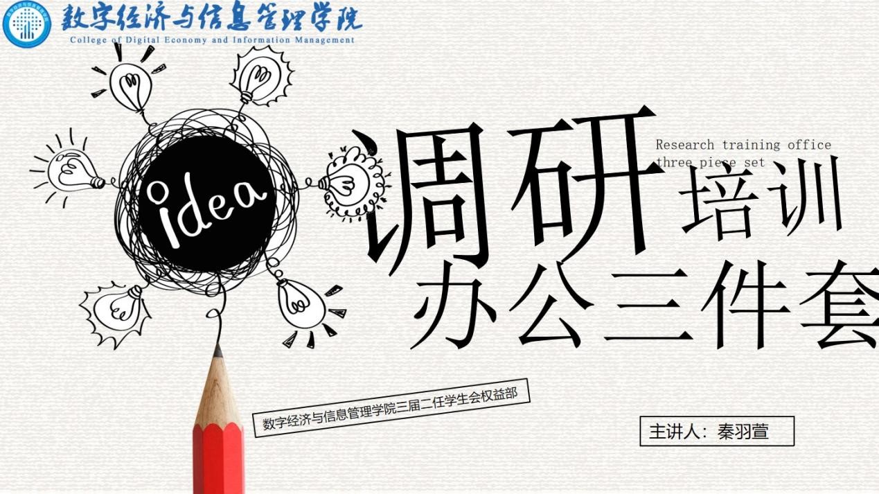 10月24日下午13:00-15:00数字经济与信息管理学院学生会权益部在汇江书院多功能活动室进行了调研活动和办公三件套的培训。此次培训的开展有利于今后更好的开展调研活动,同时也提升了各位干事使用办公三件套的技能。