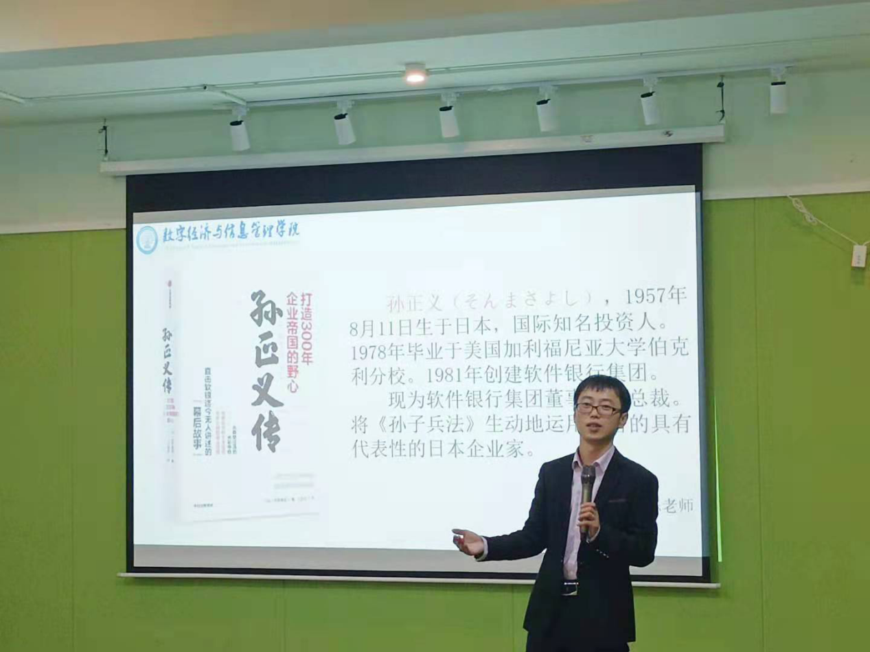 大咖传记阅读,老师伴读,同学们何其幸哉。经过一个月的阅读,老师与同学们各有感悟与体会。张栋老师分享的是《孙正义传》,他以传记类书籍的阅读方法为由头,讲到孙正义先生具备坚强刚毅的性格。他指出“勇敢卓越的人,必定是一个勤奋的、有勇气的人”,借着这个话题,他又提到社会考核需要我们有面对困难的勇气与方法,而我们应该珍惜勤加学习,不安于现状,要不断抓住锻炼自己的机会。张栋老师的读书建议真诚而实用,让同学们更深刻的反思了读书的目的与意义。