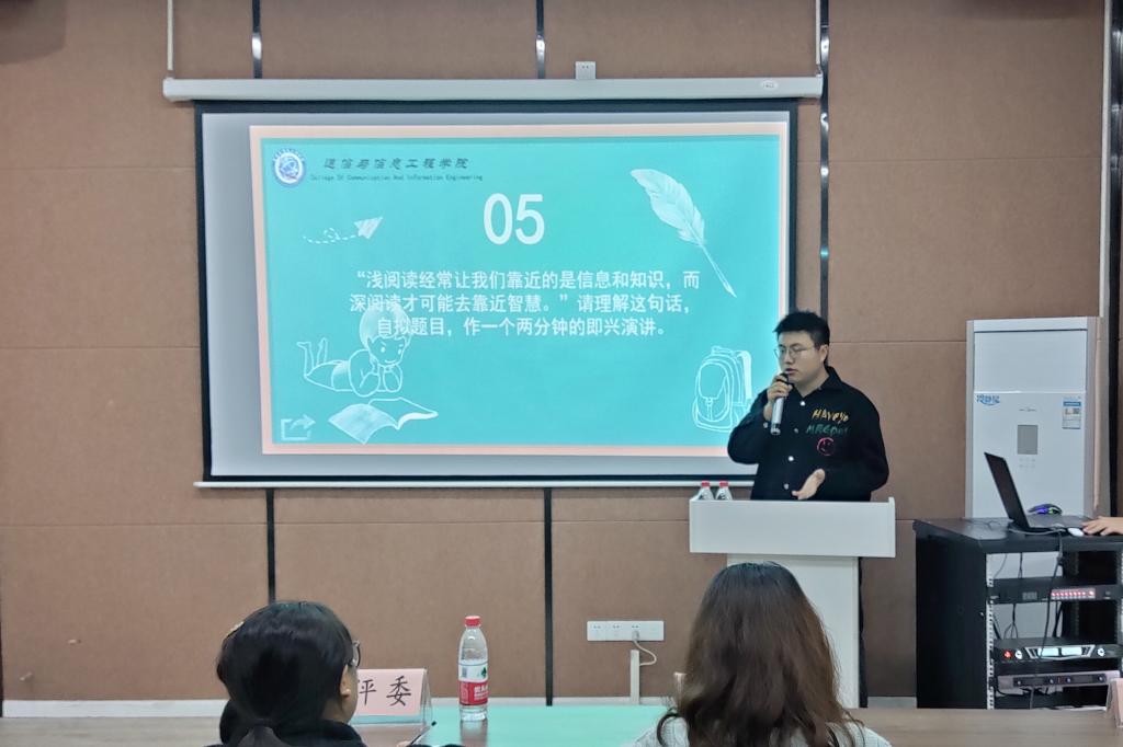 为了锻炼同学们的口才,增强同学们的自信心,丰富同学们的课余生活,培养学生们的逻辑思维能力和语言表达能力,2021年10月27日,重庆移通学院通信与信息工程学院第十三届演讲比赛复赛在合川校区鱼城书院空格影音室成功举办。本次演讲比赛复赛评委由通信与信息工程学院大咖传记阅读计划负责老师王诗颖老师、校园社团活动版块指导老师廖春燕老师、温子慧老师担任。