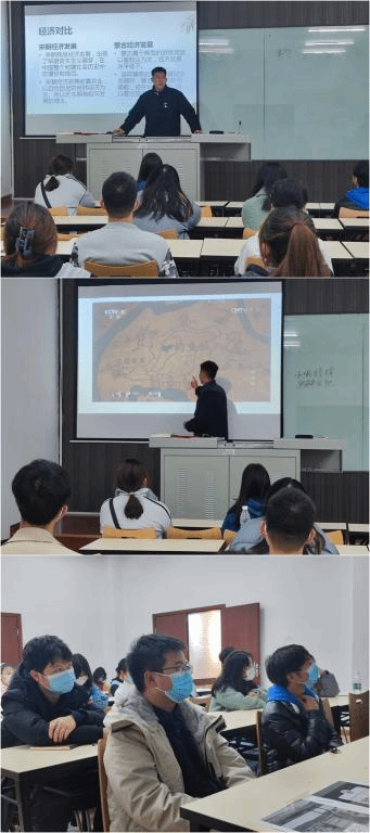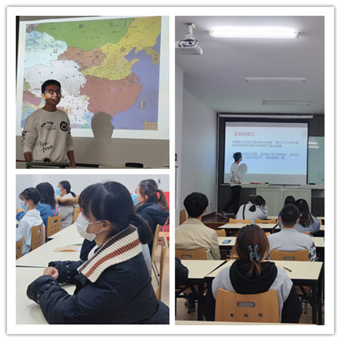 除此之外,陈映全同学带着同学们分析这场战役的全过程。他提到,一个国家在政治、文化、经济、军事中,最重要的是经济的发展。他将南宋与蒙古的经济进行对比:南宋的经济发达,在自然经济下的他们天生爱好和平;而蒙古是游牧民族,他们天生带有侵略性。这是他们本质上的不同。此后,他讲到钓鱼城地势险要,南、北、西三面环水,同时钓鱼城近乎完美的防御工事令进攻难度加大,但马鞍山却是所有防御工事中最薄弱的地方,因此在钓鱼城之战中,马鞍山是一个重要的战略地点,也是这次战役的决战地
