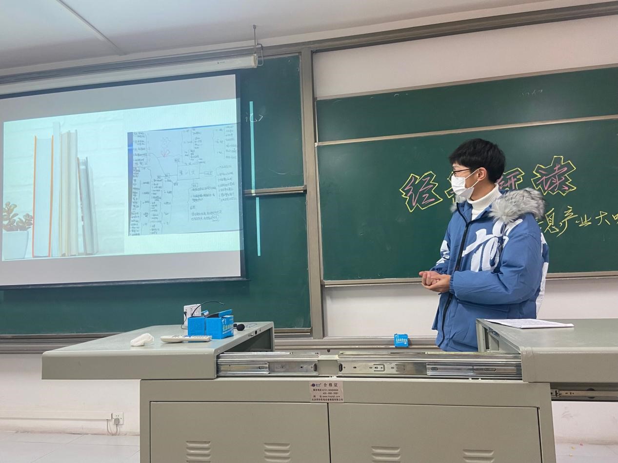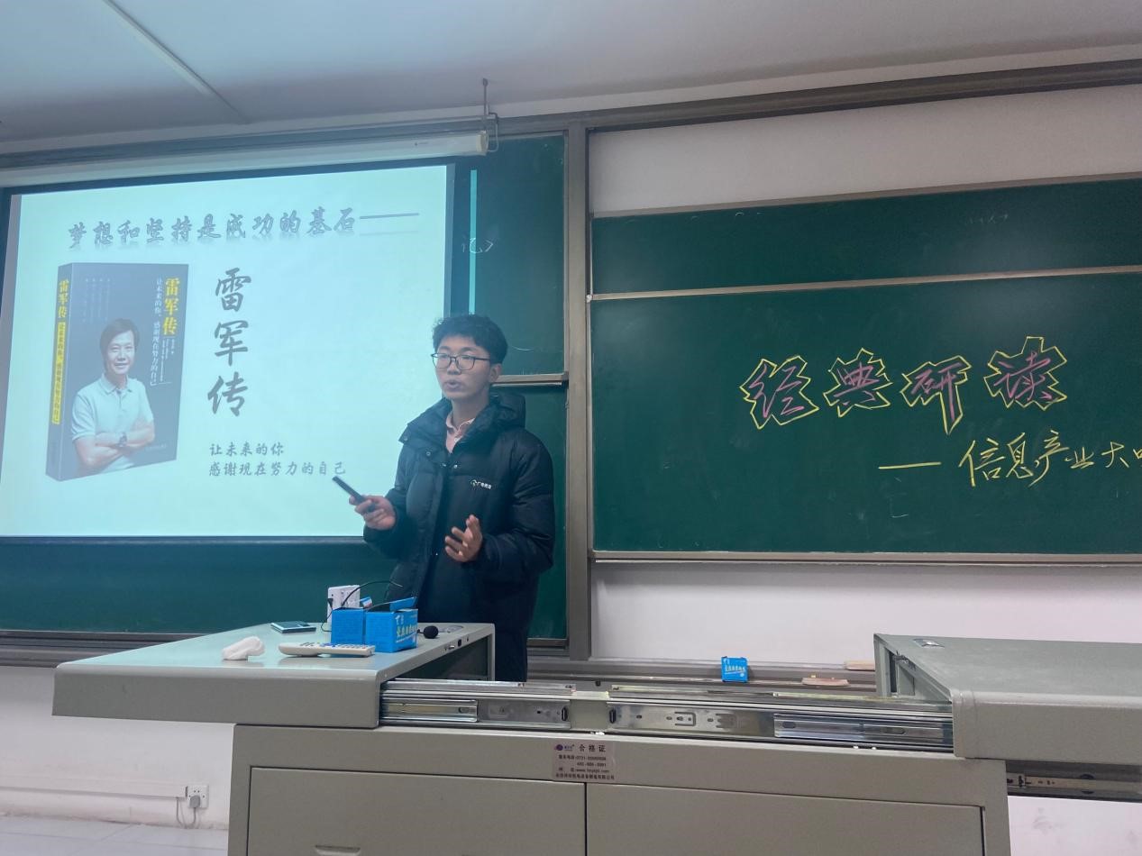 会议进入了高潮部分,向旗鑫同学将《雷军传》分为三个时期:少年、投资和创业,以严谨公正的态度去剖析雷军这个人物;向杨同学是将《腾讯传》分为三阶段,两小节,以通俗浅显的风格去解读“腾讯”是如何崛起;张静同学则是将《硅谷钢铁侠--埃隆马斯克》其中的主人公的生平经历进行概述描绘。他们都以结合PPT所展示展示的读书思维导图将同学和老师代入书本中去,他们有时哄堂大笑,有时侧耳倾听。三位同学充分发挥表达能力的优势,凭借较强的现场应变能力,完成了一次次完整而有深度的阅读分享。为同学们读书提供借鉴,读什么样的书,该怎么去读书。