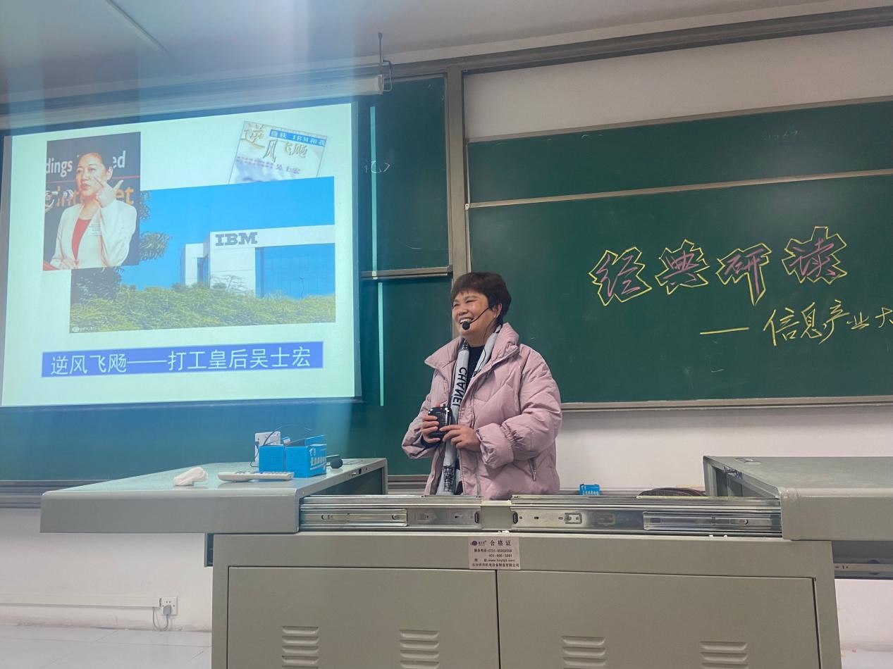 会议伊始,唐惟维老师以风趣幽默的演讲风格,将《董明珠与格力》中的董明珠人物传记描绘地淋漓尽致,打破了大家紧张羞涩的活动气氛。她讲道,读书不仅仅是一种任务,而是一种自我完善的需要。也正是唐老师的以“美”开头,让同学们深深体会到当心灵的诗篇汇聚成悦耳的音符,当岁月的脚步迈向崭新的征程,我们相会在书的海洋中,以读相约,以书会友,真切感受读书给我们带来的精神满足与快乐。