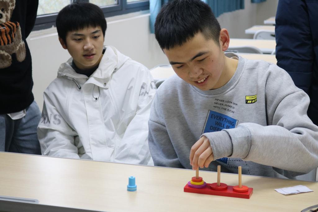 看竞速汉罗塔的现场,每一支队伍团结协作,发挥团队的智慧和激烈的讨论,发散的思维让一个个圆塔在空间飞舞着,上演了一次惊险的思维大作战。