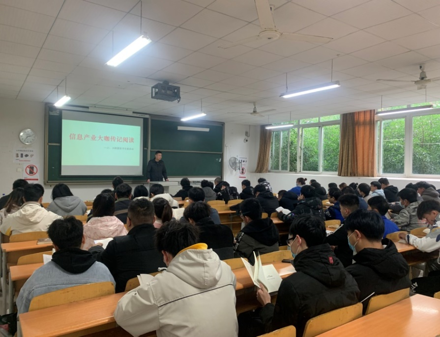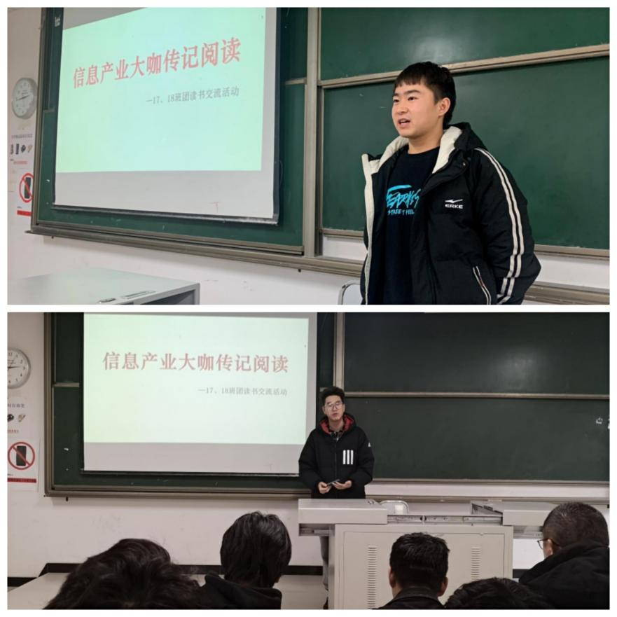 自古就有“书中自有颜如玉,书中自有黄金屋”对书籍的美谈,亦有“读万卷书,行万里路”对书籍的肯定,更有“书籍是人类进步的阶梯”对书籍的赞赏。学校抓住信息的流向,设立有“四位一体双院制”育人模式,意在培养“信息产业高情商经营管理者”,为我们准备了各类名人大咖传记,去深入剖析前辈们的丰功伟绩。2021年11月17日14点,通信与信息工程学院2019级通信工程17班和18班在学业导师谭祥老师的引领下于第四教学楼4205开展了信息产业大咖传记阅读计划。