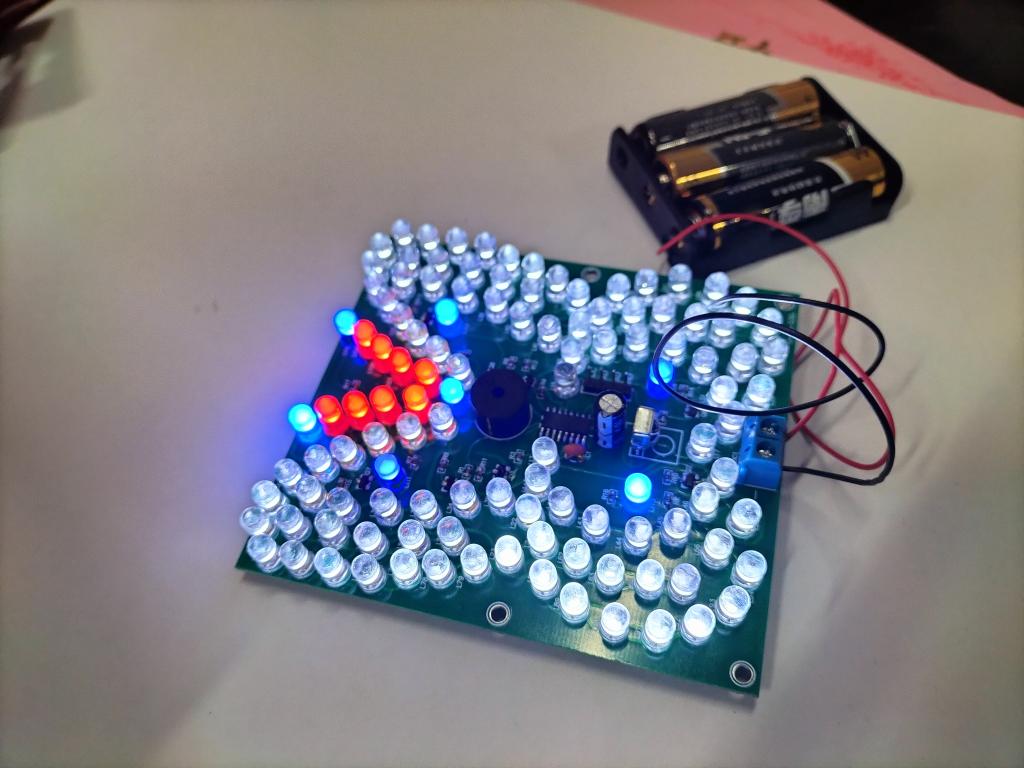 比赛正式开始,现场一瞬间安静了下来,参赛选手们纷纷沉浸在了自己的制作中。有的同学先焊接主要器件,有的同学先将“蝴蝶”制作成型,思路各有不同,现场时不时响起电洛铁焊接时的“啪啪”声。40分钟后,就有参赛选手成功点亮了“蝴蝶灯”,在遥控器的指挥下,13首音乐声变化播出,蝴蝶灯的灯光也从红色变为白色,仿若是在翩翩起舞一般。因制作难度较大,也有选手因“零件丢失”、“焊错地方”、“设计失误”等原因未完成作品,遗憾离场。