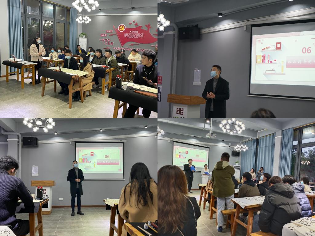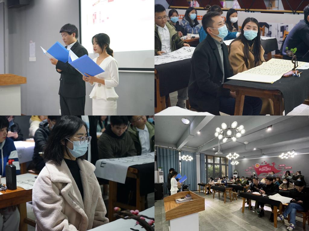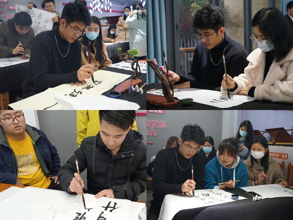 为响应学校“焕新·提质”主题年与“大咖阅读计划”,号召同学们放下手机,阅读大咖传记,感受并学习业内大咖们的成长历程,丰富自身内涵。数字经济与信息管理学院与北山书院于11月19日在会客厅举办“品读大咖成长·书写百味人生”大咖阅读分享会。本次活动邀请了数字经济与信息管理学院志愿者服务版块指导老师王瑞老师、社团活动版块指导老师刘琳老师、北山书院发展导师伍早金老师、北山书院朱以豪、张辉林两位学长进行书法培训和指导。主要参与班级是数字经济与信息管理学院2021级资产评估四班。