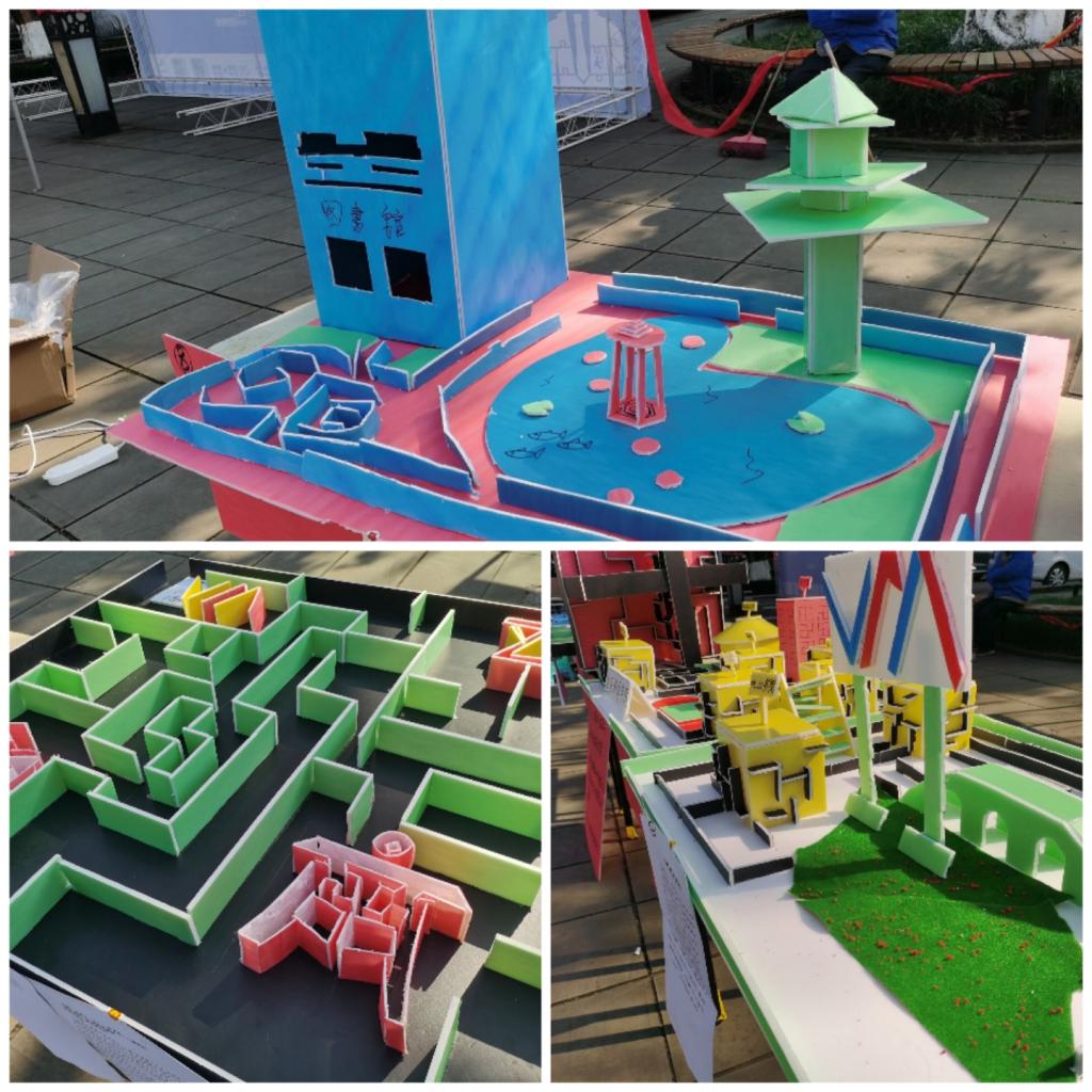 本次迷宫大赛决赛由大众评审实名制对喜爱的迷宫作品进行投票、老师评委及学生评委通过选手讲解作品的创作思路和寓意、表达作品概念,从整体效果、作品创意、难易程度、作品讲解、作品寓意五个方面对参赛作品进行评分。