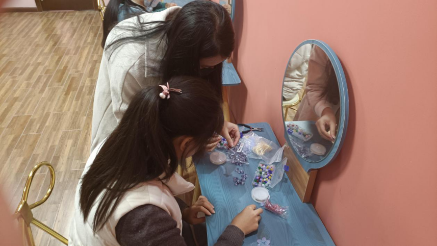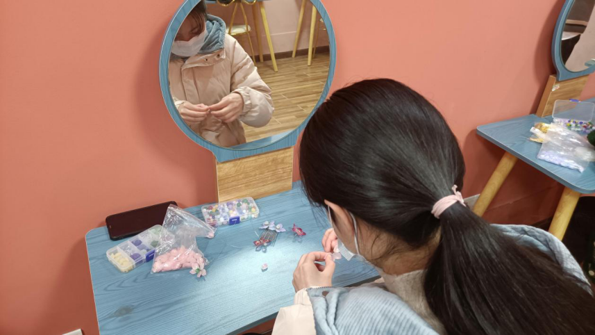 课堂伊始,社长向社员们讲解汉服文化,汉服文化不仅反映儒家礼典服制的文化总和,还体现在祭服、朝服、公服、常服以及配饰上,尤其强调其中的头饰,头饰是汉服的重要组成部分。社员们通过制作缠花琉璃发现汉服美所在,感受传统文化韵所藏,同时也很荣幸华韵的指导老师杨敏老师莅临现场,课堂上老师穿上汉服一同与社员们进行琉璃头饰的学习与制作,共同感受汉服文化。