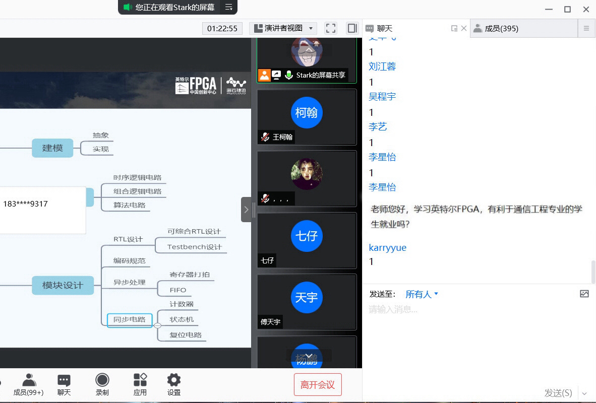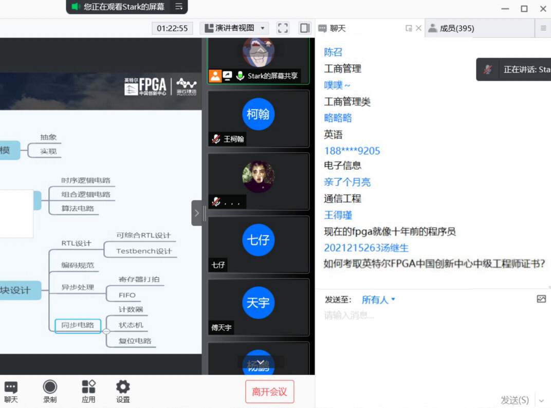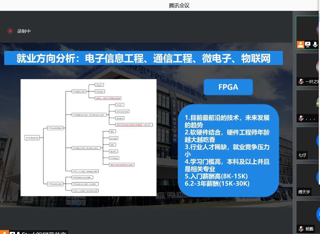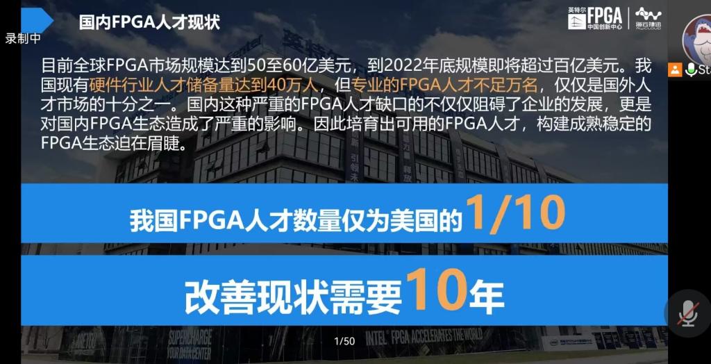 首先,王老师从FPGA现状和其应用领域进行详细讲解,FPGA作为可编程逻辑器件,已经逐渐演变为数字系统的核心,同时伴随半导体工艺的进步,FPGA器件的设计技术也取得飞速发展及突破,现在FPGA技术正处于高速发展时期,它涵盖了医疗、通信、航天等领域,老师通过实例讲解使同学们更加浅显易懂。