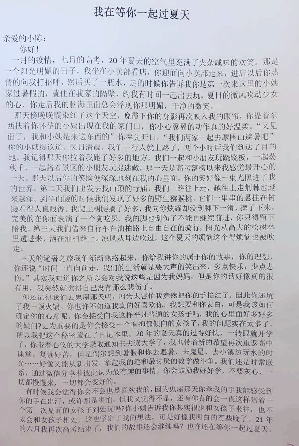 《我在等你一起过夏天》点评:作者写出了自己以往和自己有好感的男孩子的美好回忆,充满了青春的青涩和懵懂,内容真实,但又充满遗憾,把青春期的感情表达得淋漓尽致。