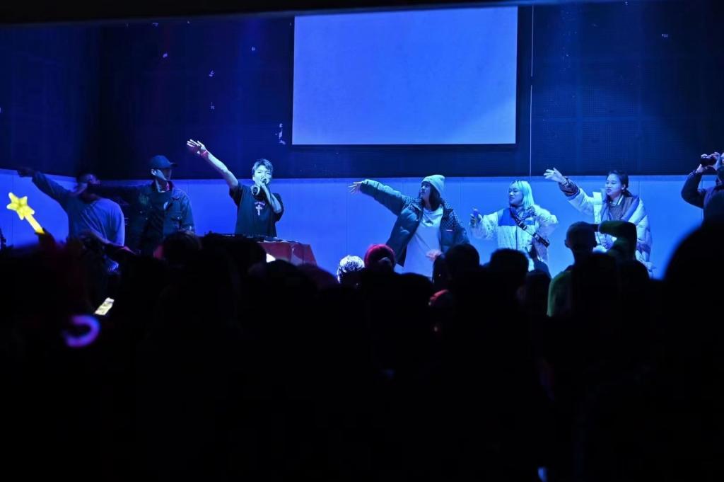 To拓说唱社社长马润与俞斌的说唱助力表演,使得室内温度持续攀升,活动气氛燃至最高点,一场关于音乐的强烈碰撞,让现场的小伙伴们为之尖叫呐喊。