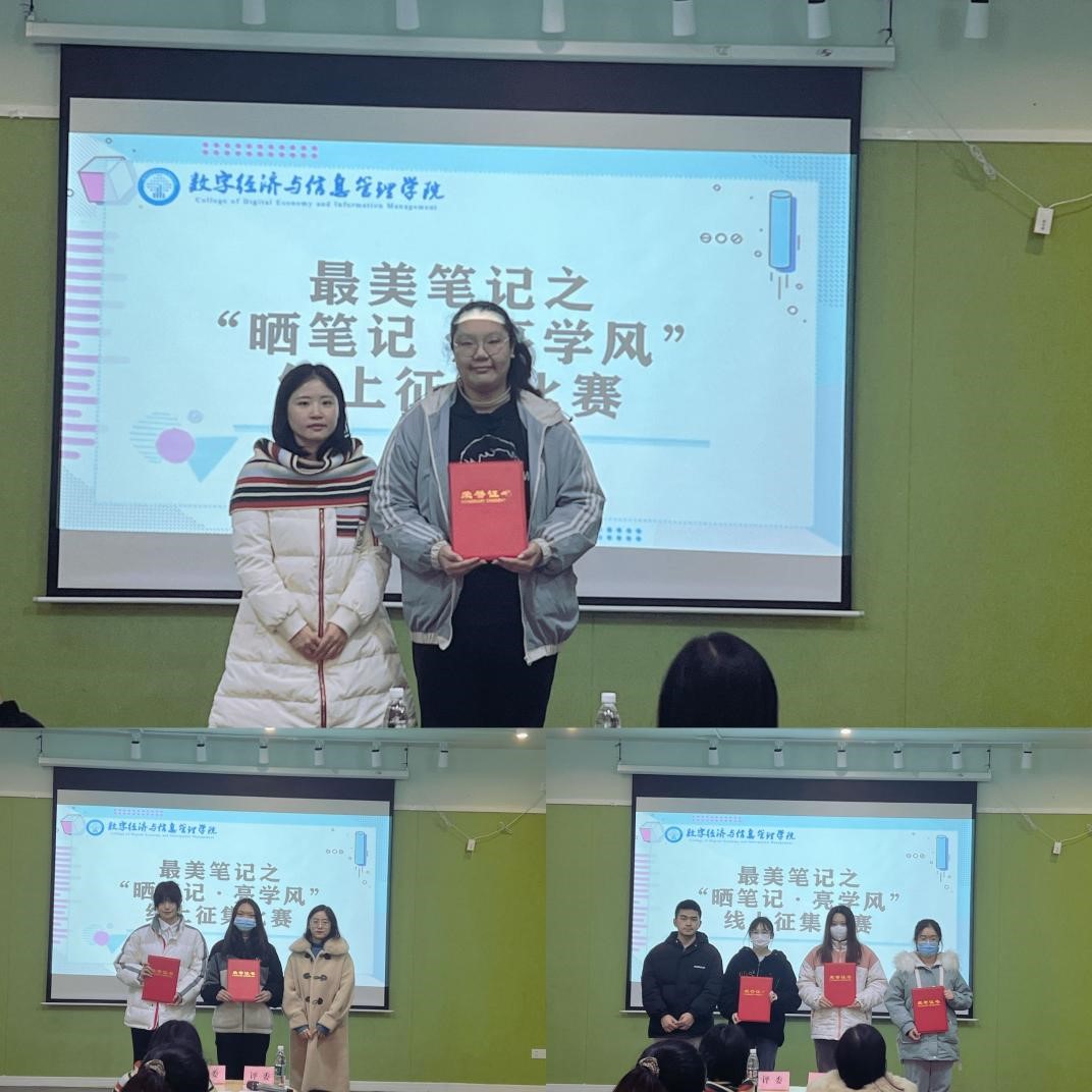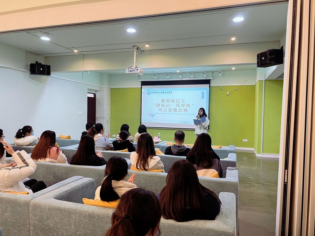 初冬天气暖,小似立春时。冬日袭来依旧抵挡不住学习热情,为丰富学习生活分享优秀学习笔记,数字经济与信息管理学院学生会社团活动部、办公室特此举办最美笔记之“晒笔记,亮学风”评选比赛,12月8日中午12:10于双栀多功能影音室正式拉开决赛帷幕,莅临本次活动嘉宾有社团活动版块指导老师刘琳老师、张婷老师以及学生代表数字经济与信息管理学院团总支学生会副书记田茂杰同学。