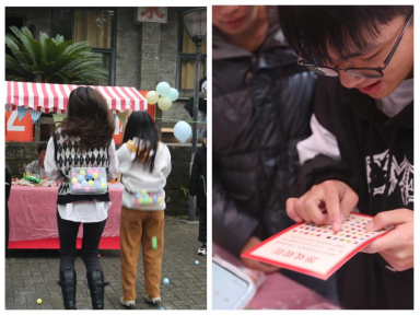 最令人激动的抽奖环节压轴出场,奖品有懒人椅、小黄鸭小夜灯、暖手宝、旺旺大礼包等等。抽奖就像一盒巧克力,你永远不知道会从里面得到什么样混合着苦涩的甜蜜。抽到奖励的师生会和好友分享此时的运气,好运也就得到了传递。没有得到奖励的师生也不会气馁。你与朋友在菩提书院广场度过游园会的这段时光也是一种好运。