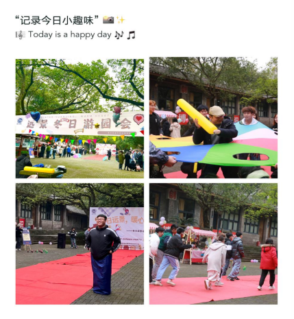 12月8日,15:00,菩提书院广场里热闹非凡,学子如织。学工副院长李院长带来了激情的发言,拉开了游园会的序幕。Rap社的激情rap作为开场表演点燃师生们参与活动的热情。在菩提书院广场的中央,师生们进行着鱿鱼游戏、打地鼠和接力袋鼠跳等开场游戏,整个菩提院子回荡着欢声笑语。师生共同体是成立远景学院的初衷之一,在这次活动中通过面对面的交流更好的打破了学生与导师之间的隔阂,促进彼此间相互了解、共同成长。