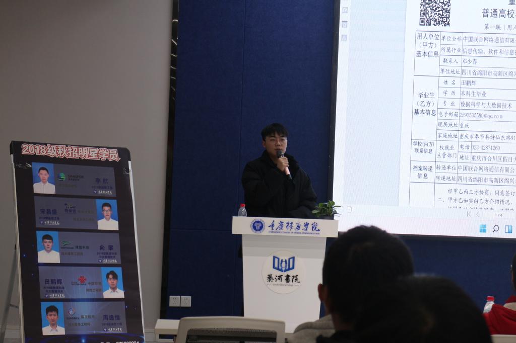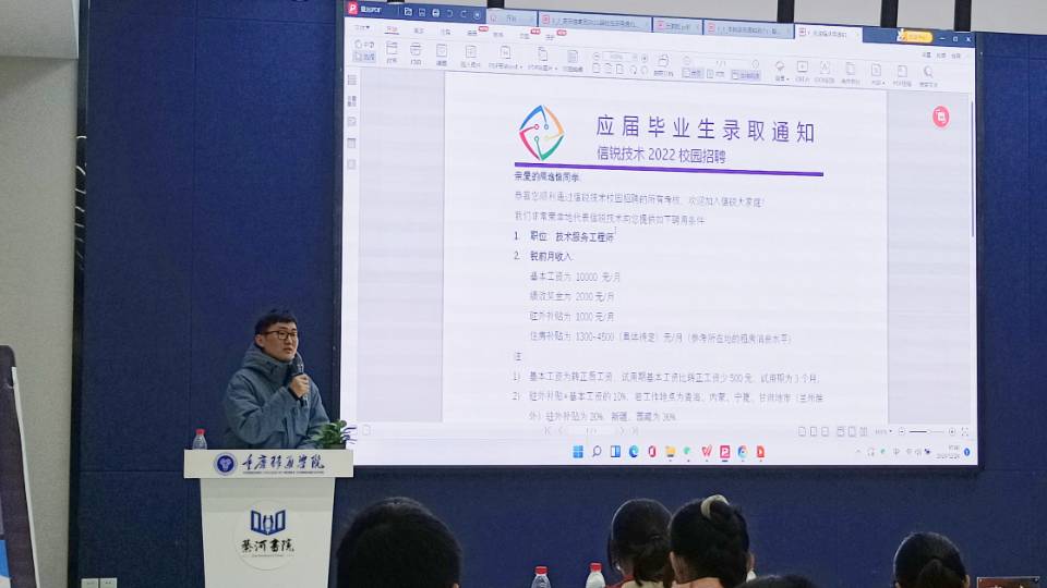 为了培养同学们的实操能力,提升人才培养质量,让同学们更加明白ICT工程师是什么,发展前景如何,以及如何成为ICT工程师,通信与信息工程学院双校区联动,在合川开完线下交流会后,于12月20日下午4点到6点在綦河书院2号楼QH2222进行“ICT工程师优秀学长交流会”。本次交流会邀请了通信与信息工程学院副院长王国树副教授、王微昕老师、学工办主任周俊老师、辅导员程希老师以及五位学长作为活动嘉宾。