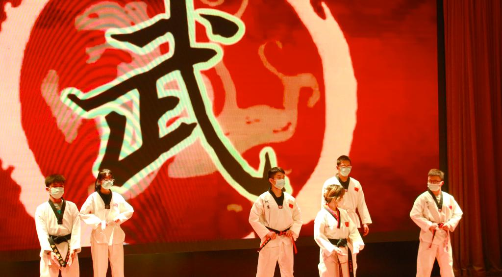 伴随着强有力的踢腿动作,一气呵成的武打动作,武道协会的社员们向同学们展示了武术的魅力;啦啦操与排舞协会《字正腔圆》所带来的编舞使人意犹未尽,在表演的间隙重庆移通学院书院部部长穆春江老师为“头号玩家”第九届“百团大战”校园吉尼斯挑战赛项目冠军颁奖,并希望他们把年轻的姿态带入到学习之中,不断挑战自己、超越自己。