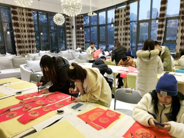 时光飞逝,2021年即将过去。家家户户准备着迎接2022年的到来,春联便是不可或缺的年货之一。新年到来,每家每户都将换上一幅新春联,新年氛围感直接拉满,别提有多喜庆。同样,春联贴宿舍门口,能体现团结温馨之氛围;赠予朋友,能表达对其真挚的祝福。12月17日,书法与美术协会在荷悦书院109活动室开展以“迎新春•写春联”为主题的活动,吸引了广大同学的参与。