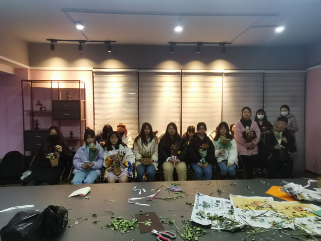 花朵是大自然赠予人类的礼物,时间的沉淀让鲜花变成了干花,通过制作干花花篮等方式,即留住它们的美丽,又让自己愉悦充实。所以,“插花不只是一门技艺,更是在陶冶自己的性情和情操。”活动临近尾声,一件件清新淡雅的插花作品也被相机定格了美丽,同学们手捧着自己制作的干花花篮合影留恋,为生活增添一抹靓丽的色彩。