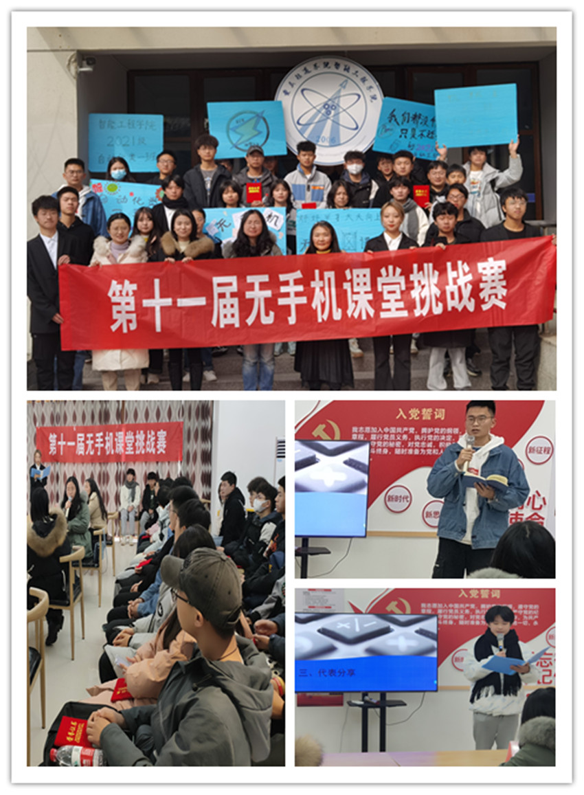 当今时代,学生在课堂上低头玩手机的情况已经屡见不鲜。为规范课堂秩序,引导学生养成良好的学习习惯,营造浓烈的学习氛围,2021年12月,智能工程学院特此举办为期两周的第十一届无手机课堂挑战赛。