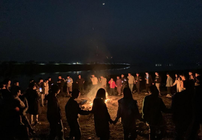 “太阳终将落下,黑夜如期到来”,在大家的期待下,“篝火晚会”如期到来。大家将寻来的柴火点燃,在这寂静的幕布下,迸发出一道道亮光,映照出每个成员充满笑意的脸庞。大家手拉手,跟随着节奏大声歌唱,此刻没有五音俱全,没有音色俱佳,只有心中那一丝对过去的遗憾和对未来的希望。大家欢笑着、蹦跳着、嘻叫着,尽情享受着这场欢乐的宴会。