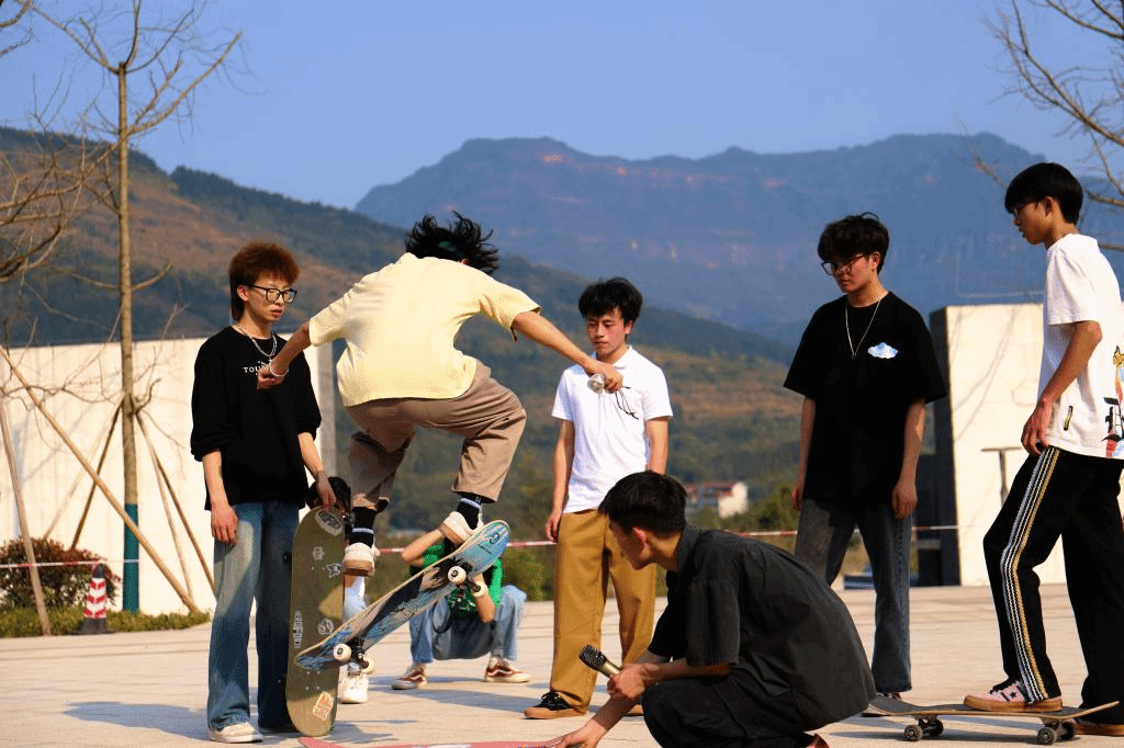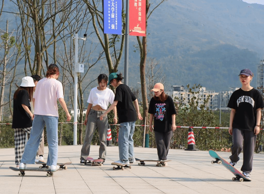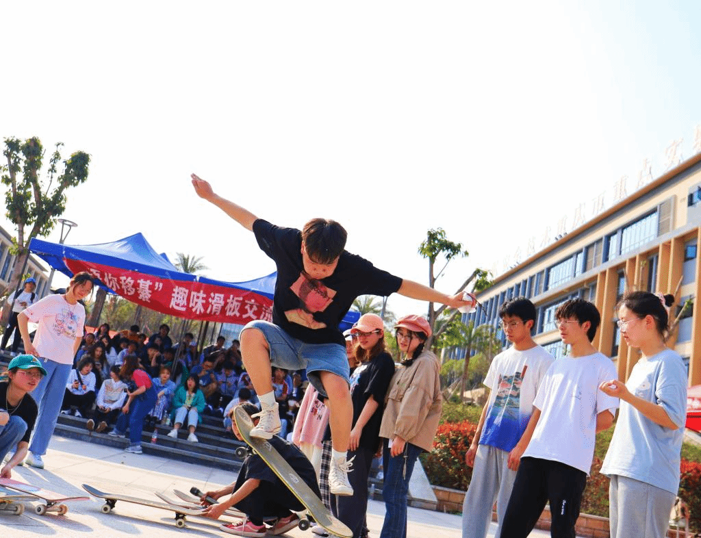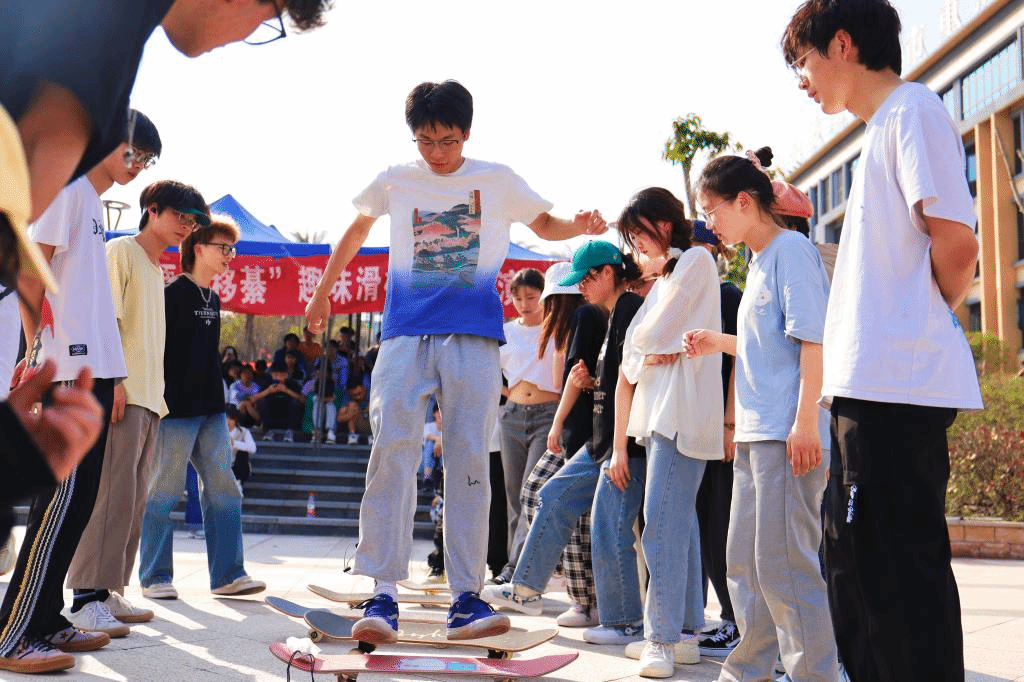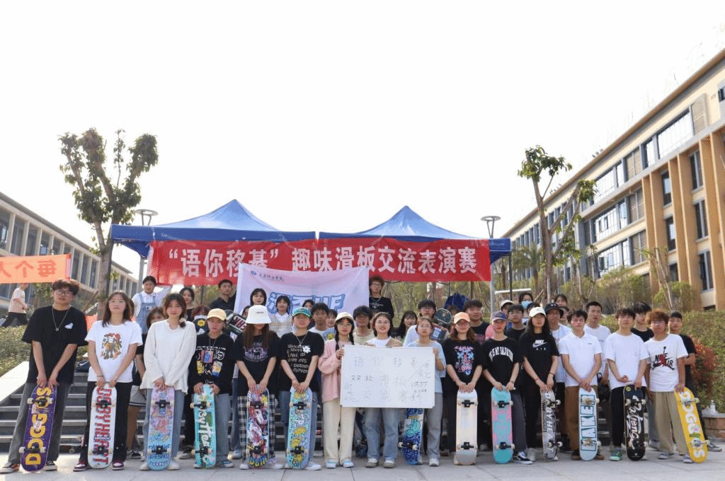 近几年来,滑板作为一项极限运动,一直是现代年轻人证明自我、挑战极限的表达方式。“滑否”滑板社作为新校区首批成立的社团之一,通过每天、定时定点的在校园内进行训练,在校内掀起了一阵滑板运动的小热潮。基于此,我校与重庆外语外事学院街头文化社联动,于3月11日移通綦江校区进门小广场成功举办“语你移綦·趣味滑板”交流表演赛。
