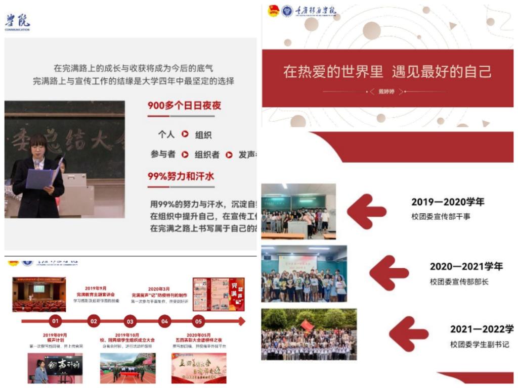 作为主讲人的戴婷婷学姐以“在热爱的世界里,遇见最好的自己”为主题,讲述了自己在完满教育的培养下所收获到的一些经验教训和心得感悟。如戴婷婷学姐所言,在大一到大三短短三年的时间,从最初的干事成长为干部,再成长为现在的校团委学生副书记,常常在幕后工作的她以“努力做到最好”为座右铭,努力将自己所掌握的专业所学运用到工作中,圆满地完成各项工作。