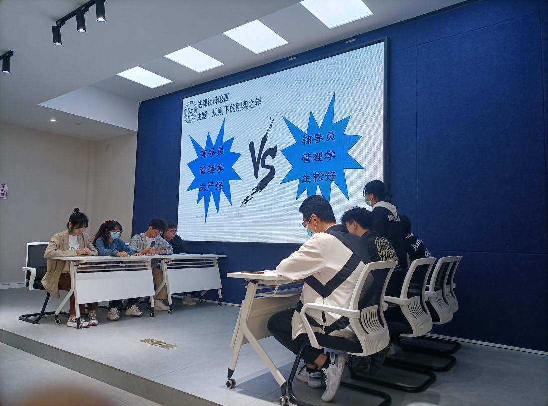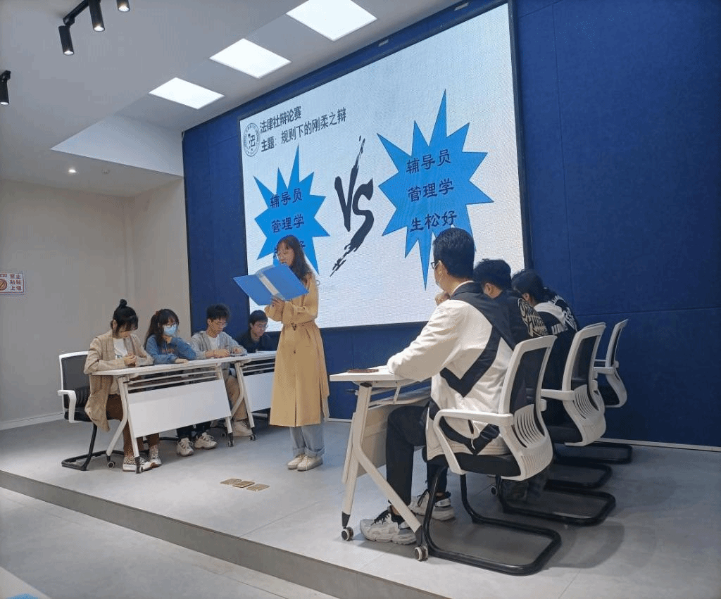 在党的十八大报告“全面推进依法治国”的基础上,党的十九大进一步要求中国特色社会主义法治“坚持全面依法治国”,这既表明了法治道路的长期性和艰巨性,也向全党迈入法治道路提出了更高的要求。大学生作为参与和建设中国特色社会主义的重要力量之一,除了在具备自身过硬的专业知识的同时,还应具备一定的法律知识和较强的法律意识。为了锻炼同学们的思辨能力、普及一定法律常识,法律研习社于3月23日在QH2222功能室开展了“移通晓法律”系列活动之“知法、懂法”的辩论赛。让我们一起走进这样一场智慧与才思的交锋!
