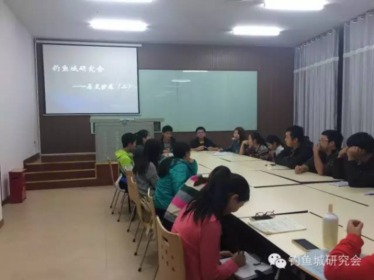 2015年10月,读书交流会上,钓鱼城研究会的成员们兴致盎然的开展文化盛宴的思维碰撞。