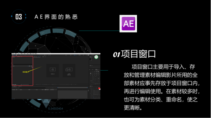 打开Ae界面,主讲人李锦首先通过对Ae软件界面的基础工具和窗口向同学们进行详细地介绍,并对其功能进行实际的操作演示,让在场的同学们都能清晰地了解了该工具和窗口的作用。