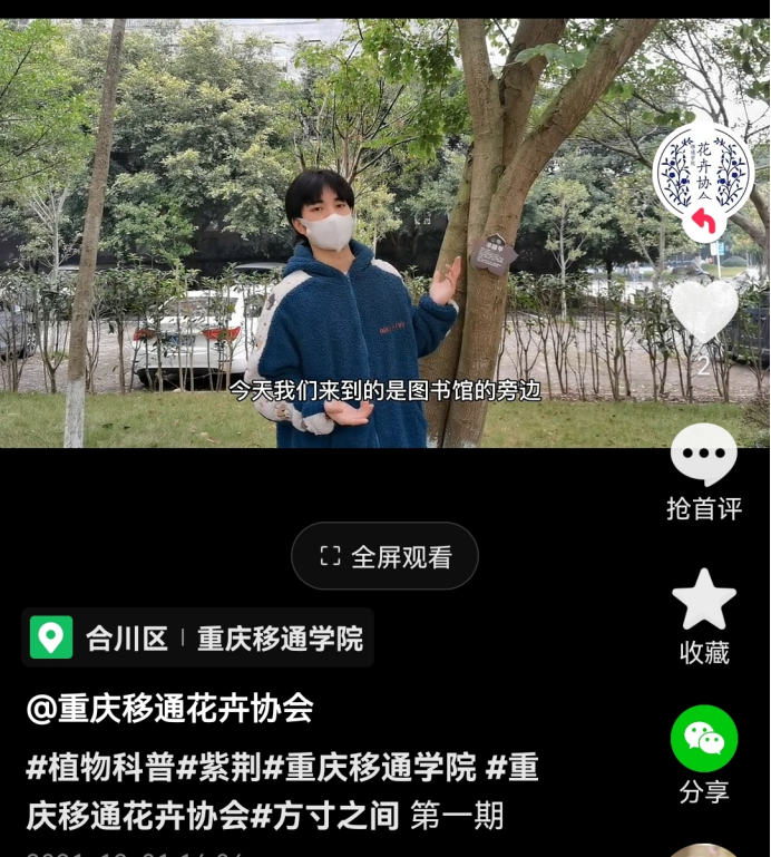2021年12月,花卉协会展开校园花草知识普及线上讲解活动,并通过抖音平台分享视频。