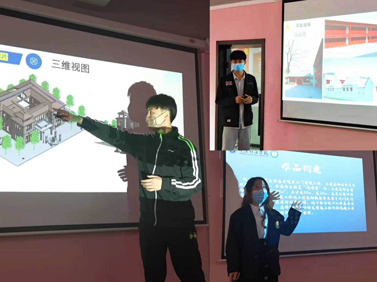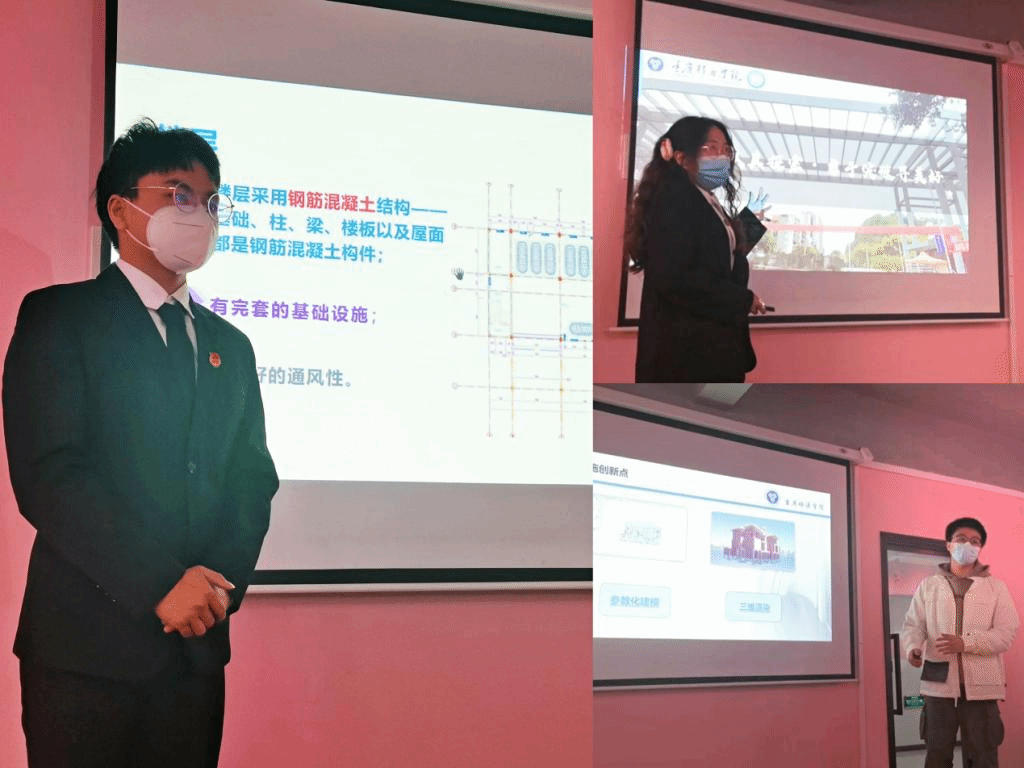 搬砖队的作品答辩从项目概况、模型展示、图纸展示、制作过程这4方面进行介绍,展示完团队协作历程记录和参赛作品后,还谈到了他们团队的心得:独立设计并建模出一个建筑是一件很难的事情,在设计过程中要考虑多方面,不过值得高兴的是建模的同时也锻炼了自己的耐心和建模的技术。南波万队呈现的是一个精美的复式洋房,模型采用钢筋混凝土结构,有着完善的基础设施。其结构独特在于坐北朝南,南面墙体多用幕墙、玻璃等材料代替钢筋混凝土,这样会大大增加采光面积。通过这次比赛赛前准备,他们感悟道:让自己的专业知识有实践机会,能够提升自己的专业能力,开拓眼界。施工队所带来的作品是四合院,其设计理念是既满足现代人的审美需求,也保存传统四合院的建筑风格,通过多方面的想象和思考,形成了独特的风格,通过视频,四合院的模型加上周围的外景布置,现场观众和老师漫步其中,给人耳目一新的感觉。