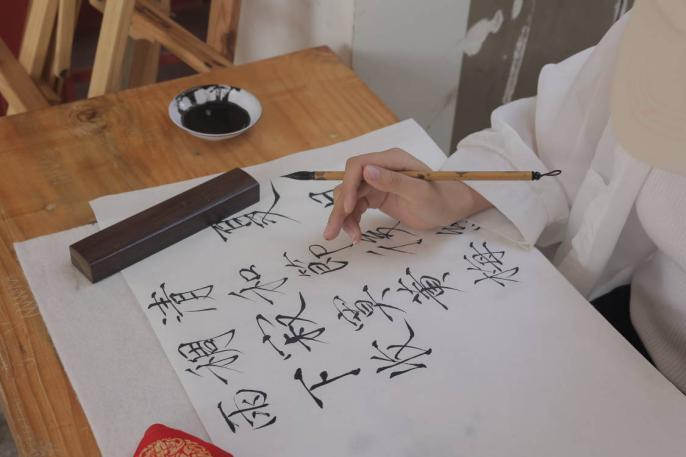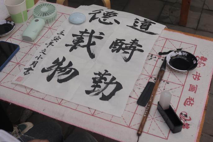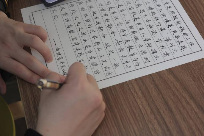 28名晋级选手分为书法组、国画组和书法硬笔组三个组别,分别围绕大赛主题进行现场创作。社长董俊杰同学说:“当一个人专注地投入某件事的时候,他会进入忘我的状态。”选手们尽情挥毫泼墨,一幅幅精美出色的作品跃然纸上。书法高手们有的在书写中融入儒家的坚毅、果敢和进取之气,有的运笔蕴含书圣王羲之的飘逸流畅、给人一种闲适舒畅之风,参赛者各显身手,作品各有意味。
