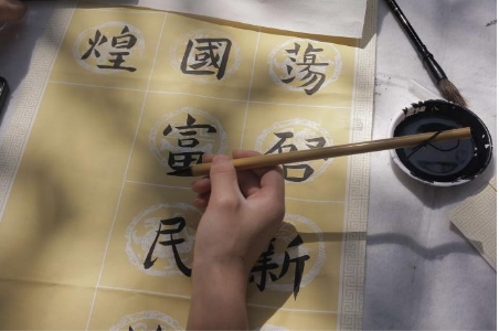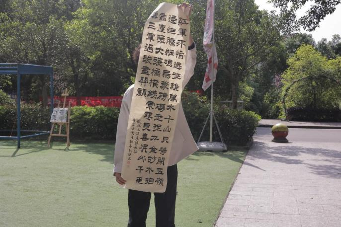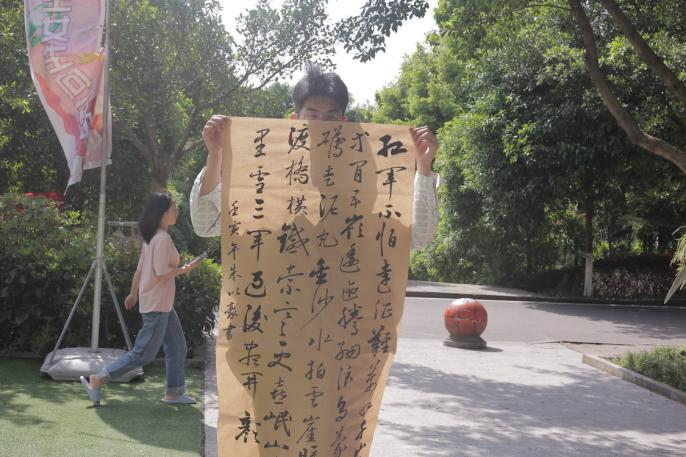 大赛时间为2022年3月30日至4月13日,本次初赛收到各个学院书画爱好者的参赛作品50余件。经过评审组的遴选,共计28位同学进入决赛并于4月13日下午14点在爱莲书院草坪举行现场创作。选手们整装待发,在热切期盼中,一双双认真的眼睛紧紧跟随着自己的笔尖与写出的字,在飘扬着舒服的翰墨气息下,处处都彰显着融洽