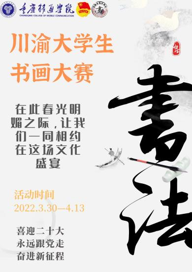 提一支毛笔,书一纸墨画。书画的魅力从古流传至今,一撇一捺,一点一钩里,都蕴藏着浓浓的中国文化气息。为喜迎党的二十大胜利召开,积极响应高校美育工作建设,展现川渝学子的文化底蕴,推动川渝双城高校传统文化建设。4月13日下午,由书法与美术协会承办的第41届川渝“校园之春”文化艺术体育活动之“青春礼赞”川渝大学生书画大赛校内选拔赛圆满结束。