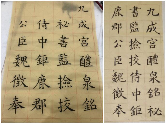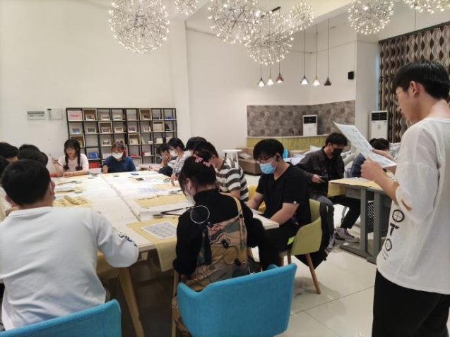 与以往不同的是,本次课堂我们使用米字格宣纸进行练习,让同学们在书写的时候注意笔画的位置和大小。经过系统的理论概述和规范的示范后,社员们开始提笔模仿,大多数同学出现字号过大或过小的问题,但倾入更多精力之后渐入佳境。协会内有些基础的同学对现场进行耐心细致地指导,同学们最后为自己的楷书学习提交了一份满意的书法作品。大家深刻地感受到中国书法的魅力社员们自己的实践后心得体会交流为本次楷书学习画上了句号。