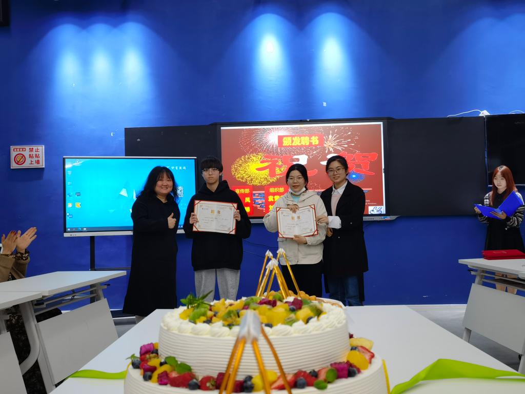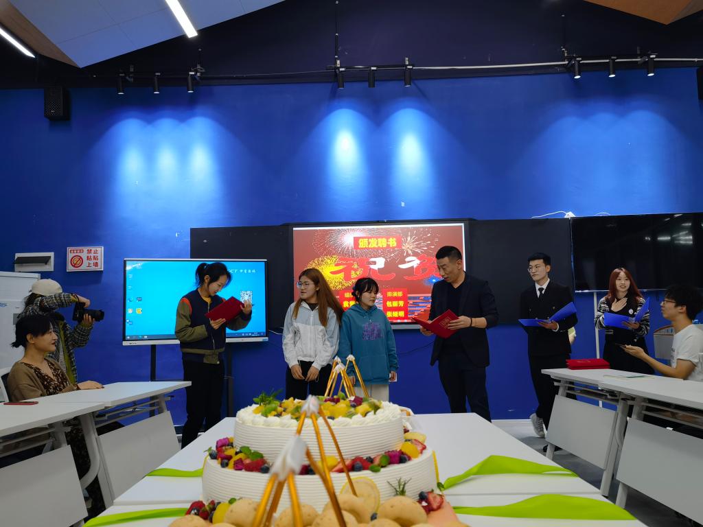 王老师亲自切蛋糕并分发,无数同学拿着手机直播画面,引得全校“哇”声、惊呼声一片片,同学们的朋友圈和QQ空间,全是大会的图片,更是将綦遇创意戏剧社“招摇”得人尽皆知,又有大量同学闯进来报名。如果不是疫情控制人流,成立大会的现场更爆了。